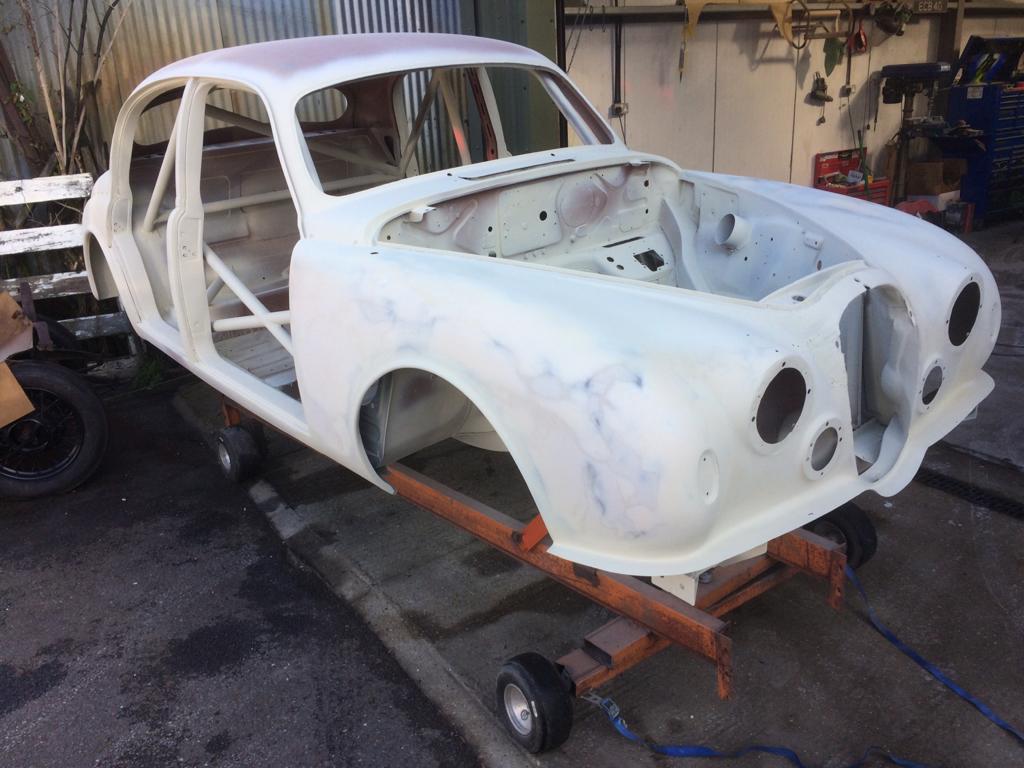 After remedial/repair works have been carried out, the vehicle is prepared for etch priming or zinc coating (for rust prevention) depending on material. Next is a high quality primer filler consisting of two coats, which is then baked. The next stage is complete wet flatting of the vehicle by hand, any imperfections are then repaired/re-primed. We then de-grease, body wipe and tack rag the body before three to five coats of top colour are applied depending on product and application. The vehicle is then oven baked and rested, before the final buff and polish and inspection.